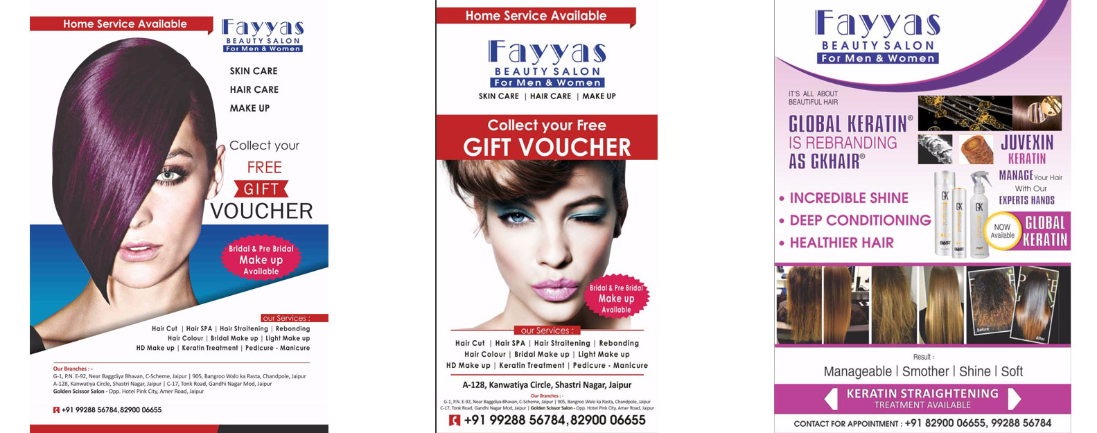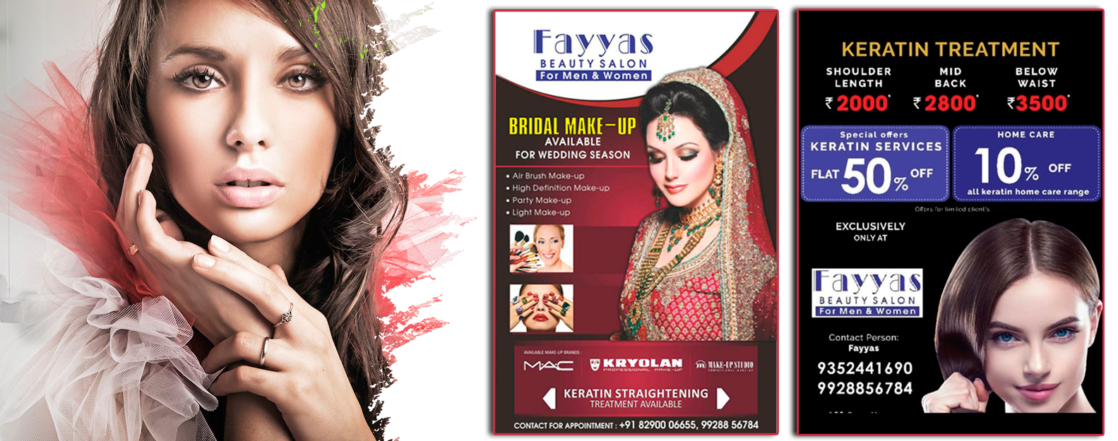 Fayyas Salon offers the finest treatments for your skin, hair and body in Jaipur, India. We have been in this business since the year 2004. We provide of beauty services on Hair Care, Skin Care, Makeup Care, Facials Care, Body Care, Manicure Care, Pedicure Care and Waxing Care. Our facility team is warm and inviting; which is very conducive for relaxing one’s body and mind. We serve our clients with a solid feeling of energy that has helped us to create as a standout amongst the most niche salons in Jaipur, giving an advantageous experience to all our customers.